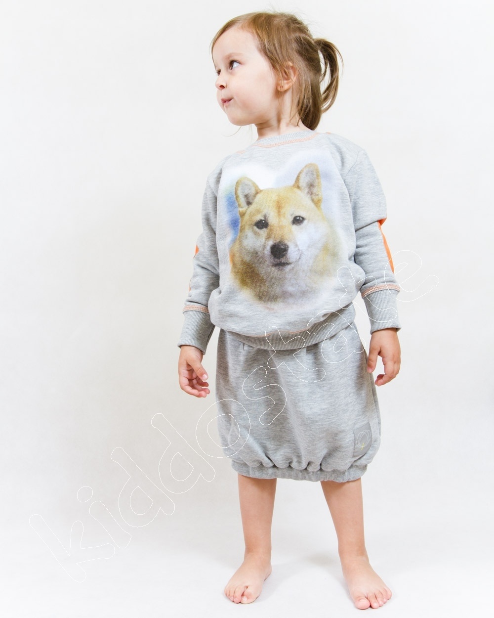 Wyjątkowo oryginalna bluza chłopięca z pięknymi wykończeniami. Pośrodku bluzy znajduje się nadruk ze zwierzęciem. Bluza w odcieniu szarości, z szerokim ściągaczem na dole i na rękawach, przewiewna. Starannie wykończona odznaczającą się pomarańczową nitką oraz naszytymi łatami na łokciach z syntetycznej skórki. Całość prezentuje się naprawdę świetnie. Polski producent, jakość pierwsza.
